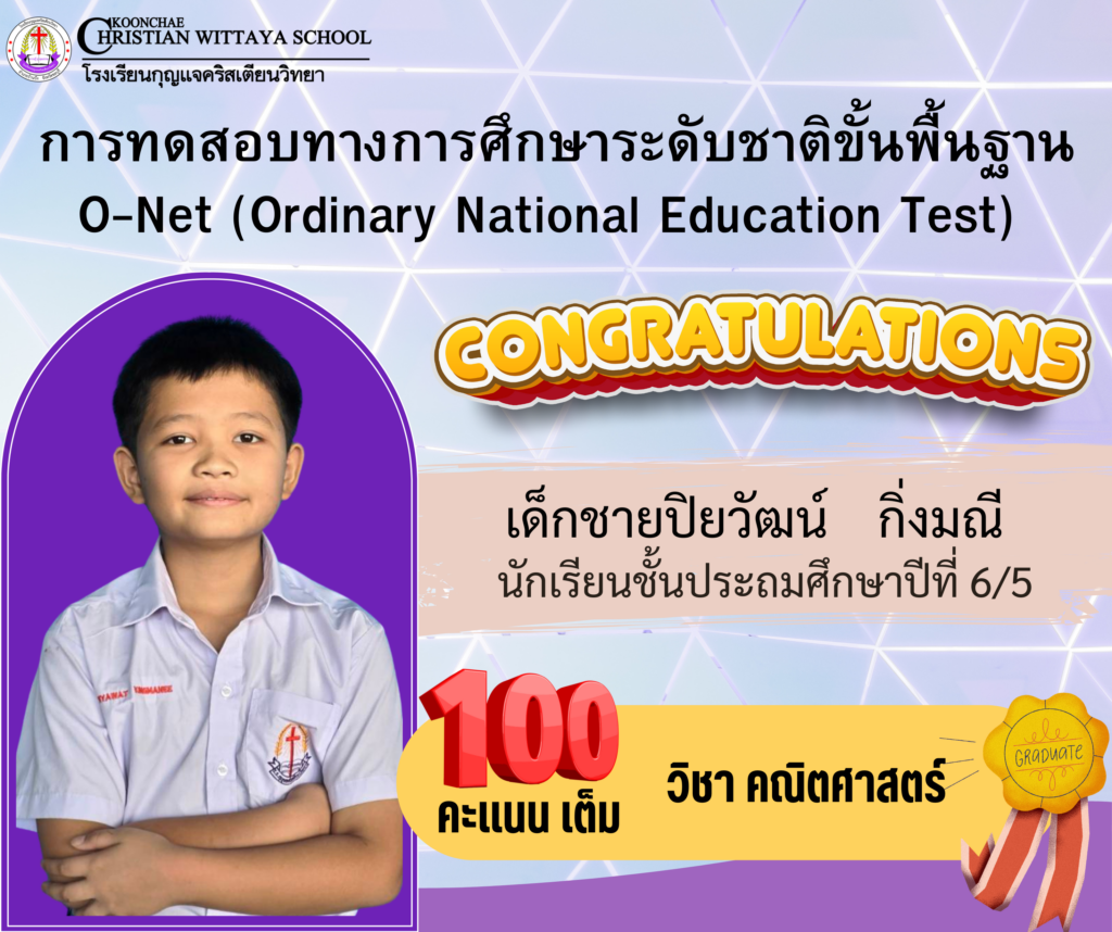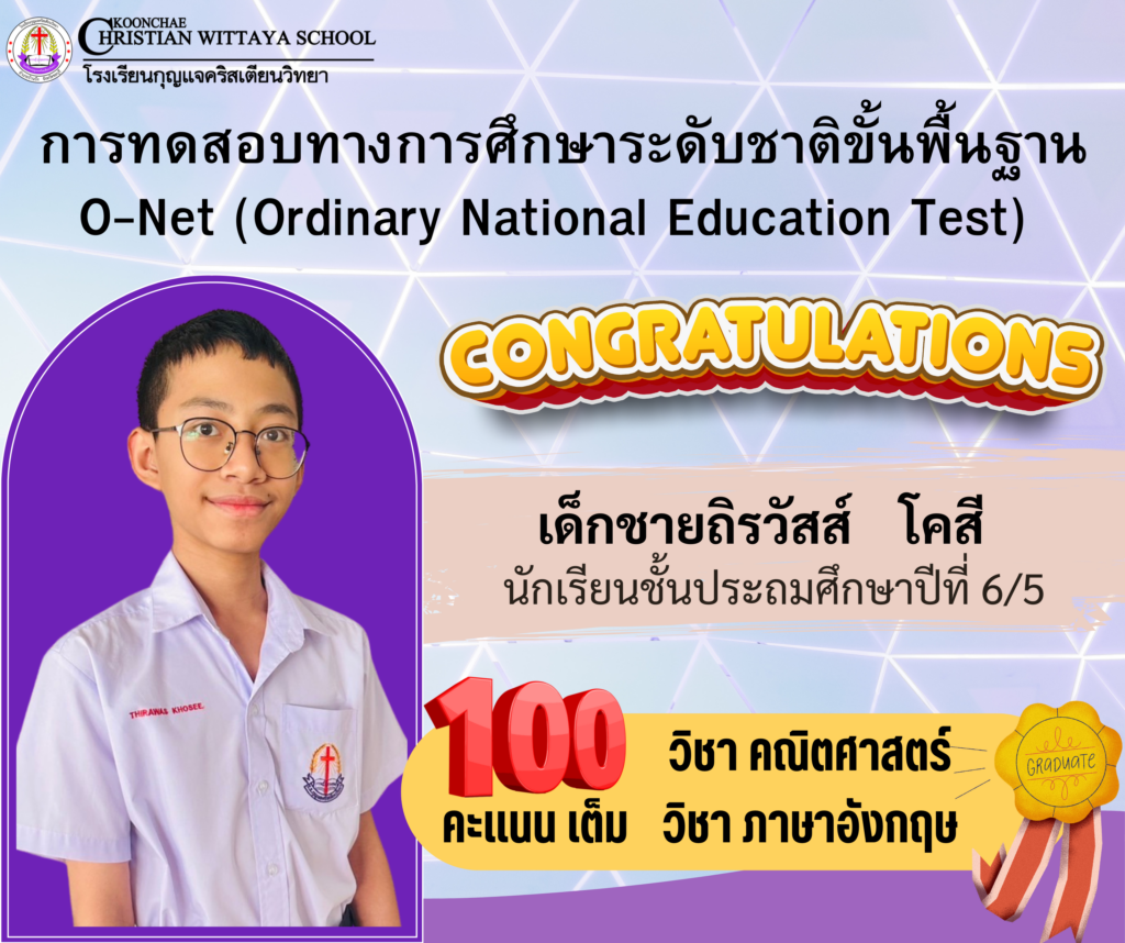 ได้100 คะแนนเต็ม ในรายวิชา คณิตศาสตร์ และภาษาอังกฤษ