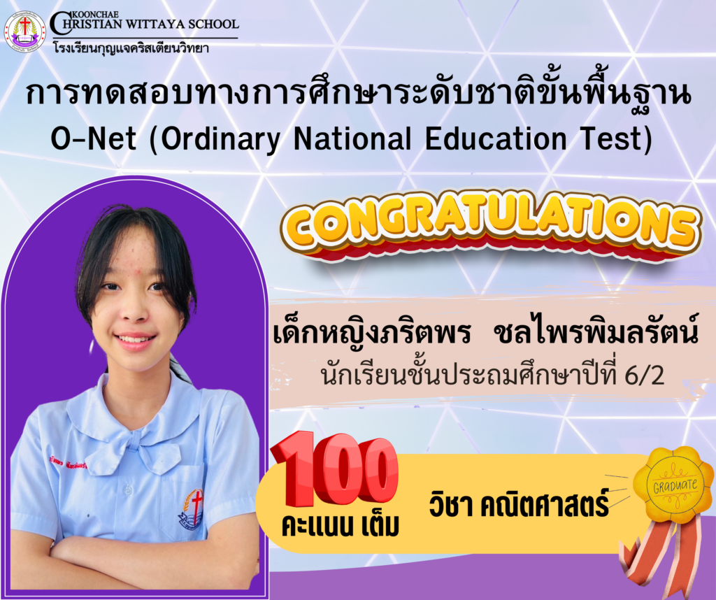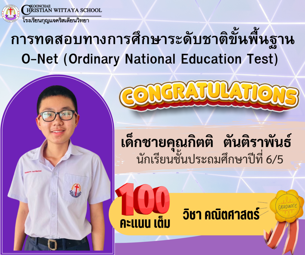 สำหรับผลสอบ O-NET ประจำปีการศึกษา 2567